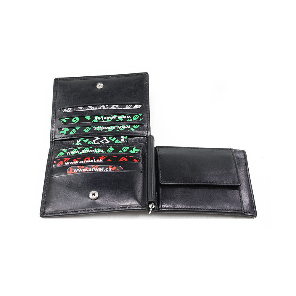 Kožená pánská peněženka od české značky Arwel.Vlastnosti:• pružina pro uchycení bankovek• 7 kapes na kreditní karty• 2 vnitřní kapsy• venkovní kapsa na minceMateriál: pravá hovězí kůže (V.T.) przeczytaj całość
