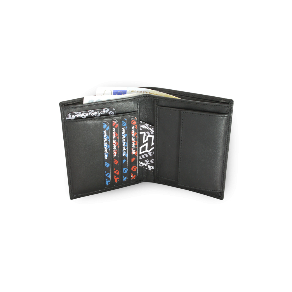 Kožená pánská peněženka od české značky Arwel.Vlastnosti:• 2 přihrádky na bankovky• kapsa na mince• 4 kapsy na kreditní karty• 3 boční kapsy velikosti osobních dokladůMateriál: pravá hovězí kůže (nappa) przeczytaj całość