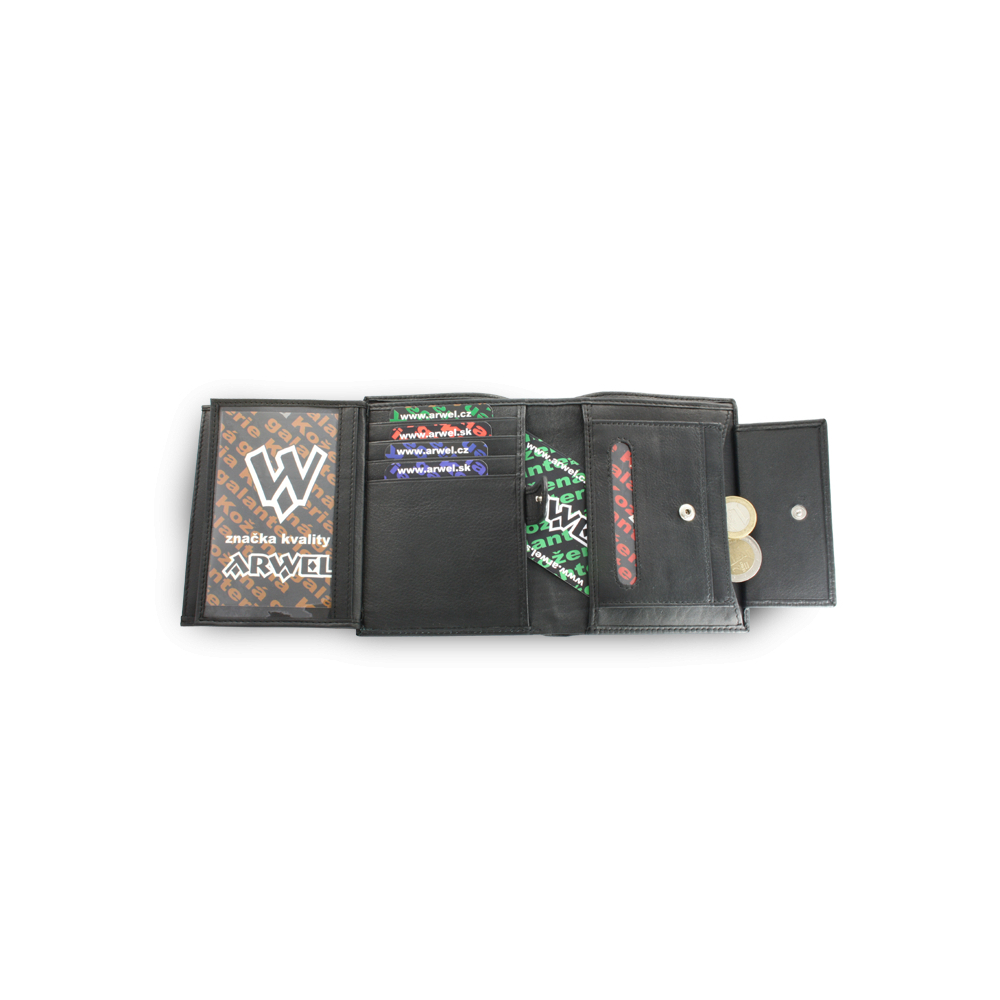 Kožená pánská peněženka od české značky Arwel.Vlastnosti:• 2 vložené listy• 2 přihrádky na bankovky• 1 kapsa na mince• 8 kapes na kreditní karty• 2 průhledné kapsy• vnitřní zápinka• chráněné místo pro upevnění služebního odznaku, včetně polstrováníMateriál: pravá hovězí kůže (nappa) przeczytaj całość