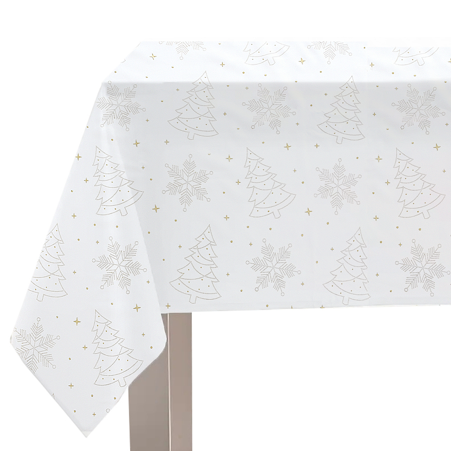 Vánoční ubrus na stůl WHITE XMAS vzor D bílý zlatý potisk 150x300 cm Mybesthome