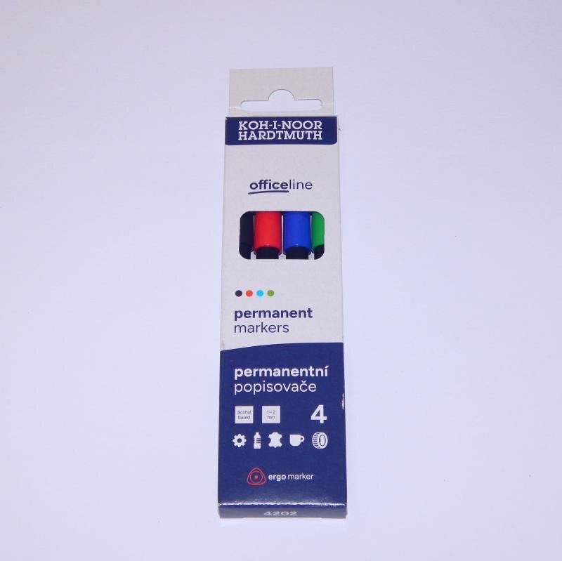 Permanentní popisovače plněné inkousty na alkoholové bázi, odstín červený, modrý, zelený, černý. Stopa písma je odolná otěru, působení vody a povětrnostních vlivů. Použití je možné na většinu povrchů, zejména jsou určeny pro psaní na neporézní materiály jako kovy, sklo a porcelán, plastické...