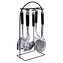 KITCHEN SET OF 6PCS WITH RACK, STAINLESS STEEL. 1 RACK STAINLESS STEEL BLACK COLOR, POWDER COATED. 6 TOOLS ,STAINLESS STEEL, IN OUR DESIGN COLOR BOX/ 200X120X400MM, Color box (CLB-C): X pc Rack, Stainless steel,1 X pc Soup ladle, Stainless steel,2 X pc Skimmer slotted,1 X pc Spaghetti spoon,1 X pc Serving spoon,1 X pc Spatula slotted / CFT 2,34,(5.971/40ft HQ)