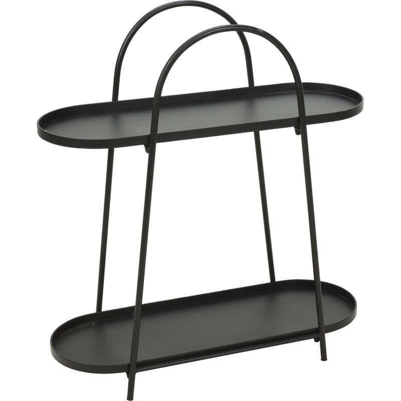 SIDE TABLE WITH 2 TIER SHELF, METAL, POWDER COATED IN MAT BLACK COLOR, SIZE 70X25XH76CM. LEG TUBE: DIA 13MM, KD, WITH ASSEMBLY INSTRUCTION, EACH WITH SMALL BARCODE HANGTAG, EACH PACKED IN 5-PLY BROWN CARTON WITH A4 COLOUR LABEL. 4 PCS IN OUTER CARTON./ 790X80X475MM, Brown box/colour label corrugated (BBCL) / CFT 4,98,(1.968/40ft HQ)