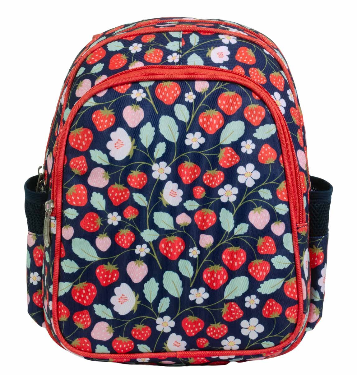 Prostorný dětský tmavě modrý batoh s potiskem jahůdek je ideální do školy nebo na cesty. Batoh má prostornou hlavní komoru, izolovanou přední kapsu na svačinu a nápoje. Láhev na pití se vejde i do jedné ze dvou bočních kapes. Praktické jsou polstrované ramenní popruhy a hrudní popruh proti...