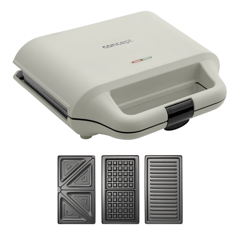 Toustovač 3 v 1 Concept SV3056 3 v 1 Nepřilnavý povrch Snadná údržba Od snídaně po večeři Toustovač 3v1 Concept SV3056 v elegantním béžovém designu vám pomůže s rychlou přípravou snídaně,...