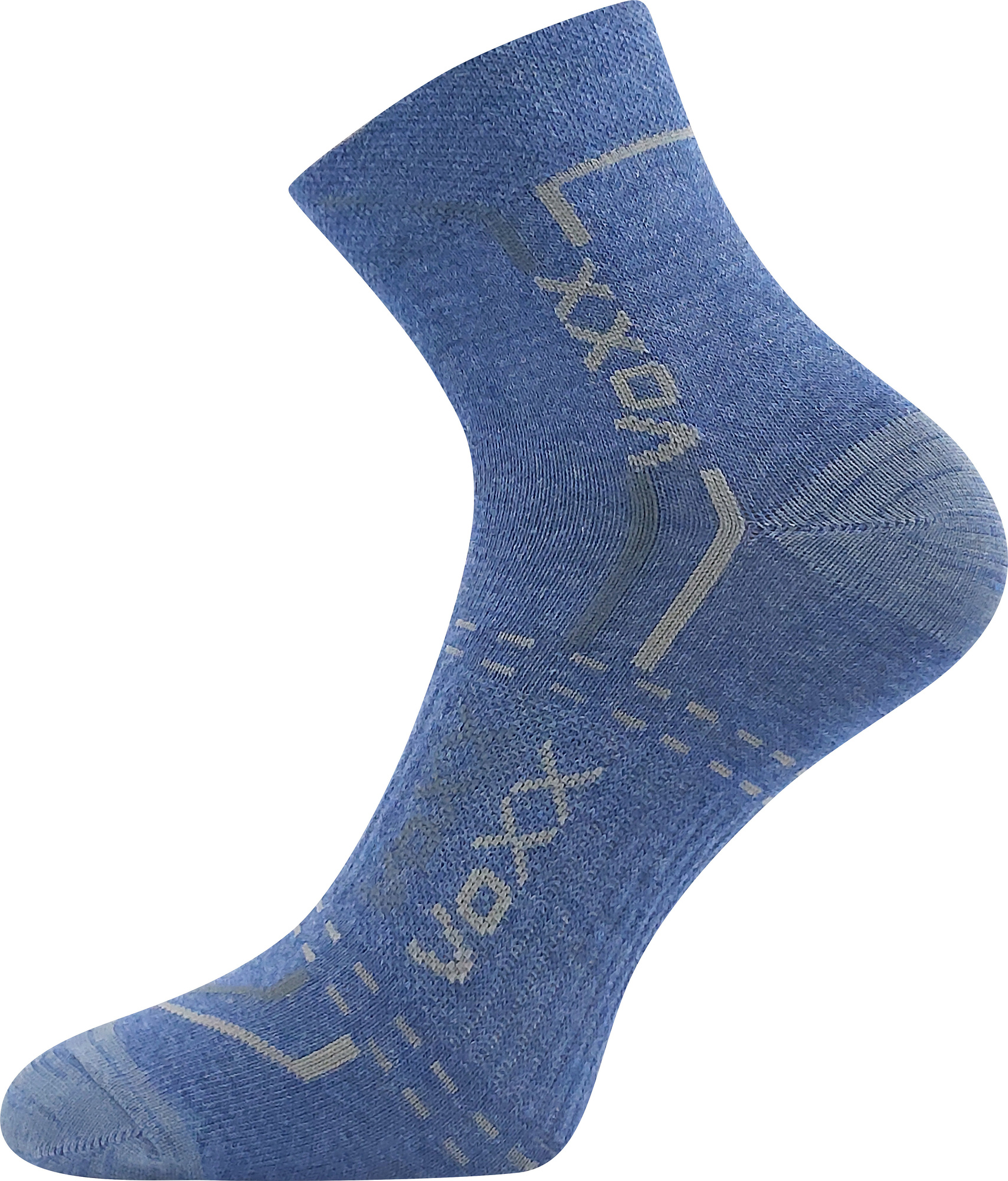 Skarpetki damskie i męskie VoXX® FRANZ 03 to sportowe skarpetki dla każdego. Bawełna pochłaniająca wilgoć jest uzupełniona elastanem, który nadaje skarpetkom elastyczność i dobrze dopasowuje je do stopy. Cienkie skarpetki o średniej wysokości nad kostkę są doskonale przewiewne, elastyczna strefa na podbiciu zapobiega zsuwaniu się skarpetek w obuwiu. Kolorowe skarpetki do fitnessu i aktywności sportowych, aż po jazdę na rowerze, sprawdzą się szczególnie w sezonie letnim; należą do klasy temperaturowej A od +10°C do +35°C.