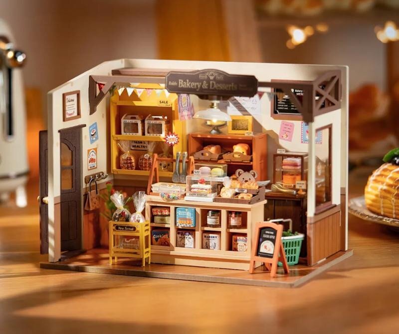 LED dřevěné 3D puzzle. Poskládej si propracovaný model pokoje (Pekárna) s krásnými detaily a LED osvětlením za pomoci obrázkového návodu. V balení se nacházejí různé díly ze dřeva, látky, kovu a papíru, které za pomoci lepidla a drobného nářadí (nůžky, pinzeta, kleště) poskládáte. Rozměry poskládaného modelu jsou 215x149x157 mm. Vhodné pro manuálně zručné lidi 14+.