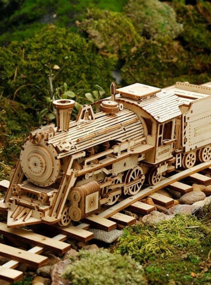 Dřevěné 3D puzzle. Sestav si propracovaný model lokomotivy s krásnými detaily za pomoci obrázkového návodu. V balení se nacházejí dřevěné desky s laserem předřezanými díly, které do sebe zapadají. Rozměry poskládaného modelu jsou 307x67x82 mm. Vhodné pro manuální zručné lidi 14+. przeczytaj całość