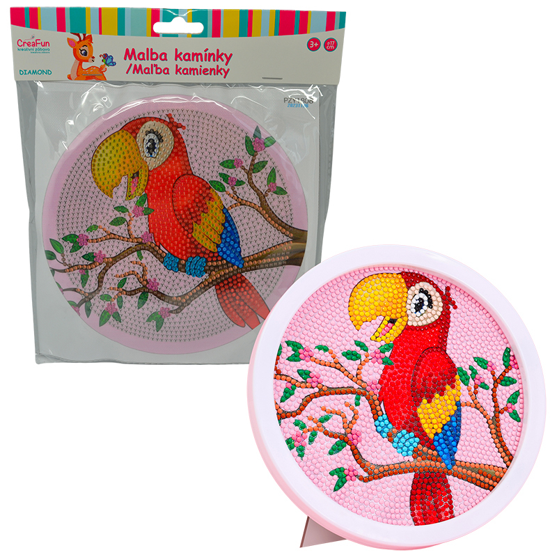 Diamantové malování s rámem - Kreslený papoušek ara 17 cm