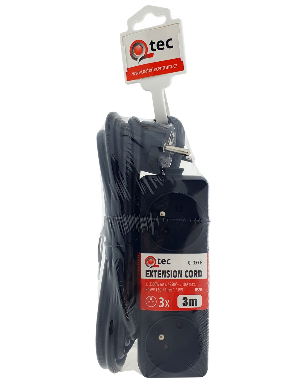Slouží k prodloužení elektrické energie tam, kam pevná zásuvka nedosáhne.Prodlužovací kabel Q-355FDélka: 3mPočet zásuvek: 3Vypínač: neBarva: černáMateriál: PVCTyp: FRENCHMaximální zatížení: 250V ~ , 10A max., Σ 2300W max.Typ kabelu: H05VV-F 3G 1mm²Zásuvky s dětskými ochrannými krytkami -...