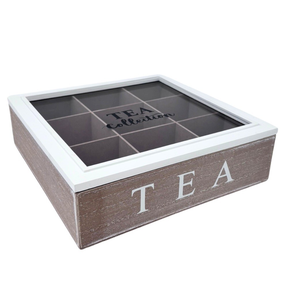 Box na čaje s devíti přihrádkami, dřevo s bílým víkem