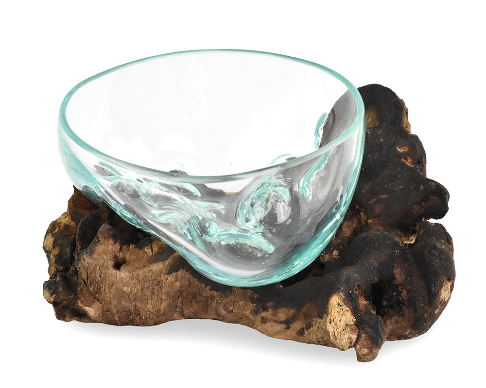 Skleněná mísa na dřevě malá 12 cm - var. I
