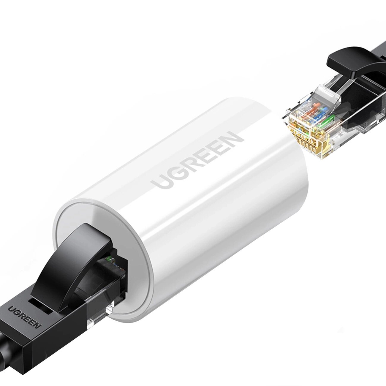 Złączka NW116 do kabli sieciowych skrętki RJ45 Cat. 5e/6 do 100m 1Gb/s - białaZłączka sieciowa Ugreen NW116 pozwala na połączenie ze sobą dwóch przewodów zakończonych męską wtyczką Ethernet RJ45. Jest to doskonałe rozwiązanie w przypadku posiadania zbyt krótkich przewodów. Łącznik kabli...