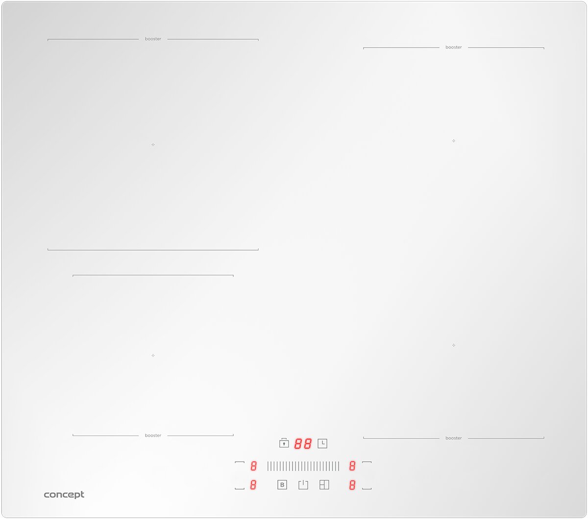 Indukční deska s flexi zónou Concept IDV5160wh Flexi zóna Ovládání pomocí SLIDERU Powerbooster Rychlé a úsporné vaření Indukční deska IDV5160wh nabízí rychlé a úsporné vaření, snadnou údržbu a bezpečný...