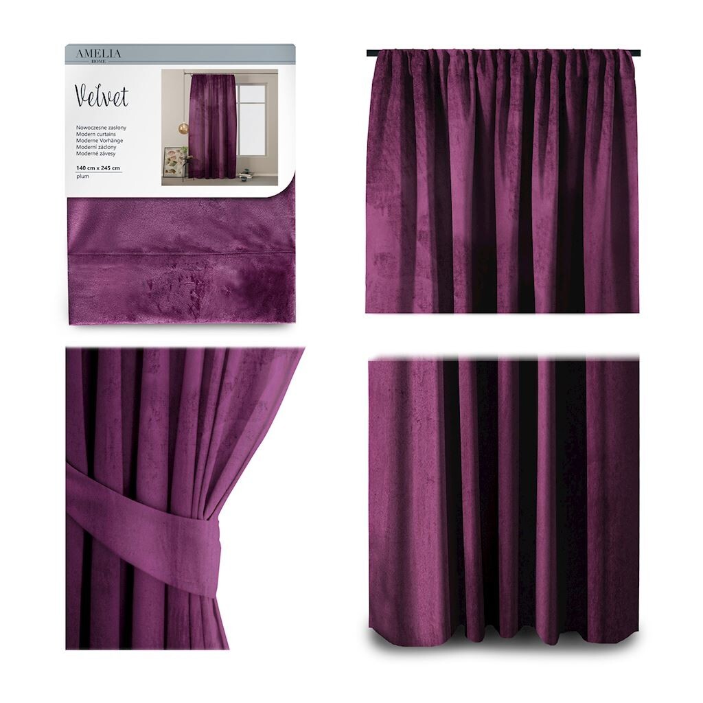 Závěs AmeliaHome Velvet 140x245 cm švestkový, velikost 140x270