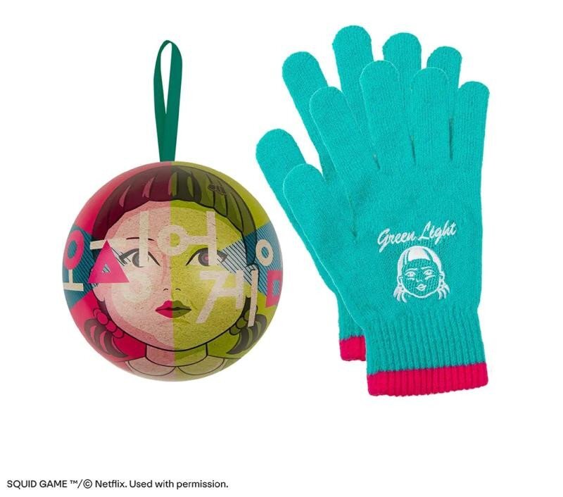Vánoční dekorace Squid Game s rukavicemi. Rozměry: 8,5 x 8,5 x 8,5 cm przeczytaj całość