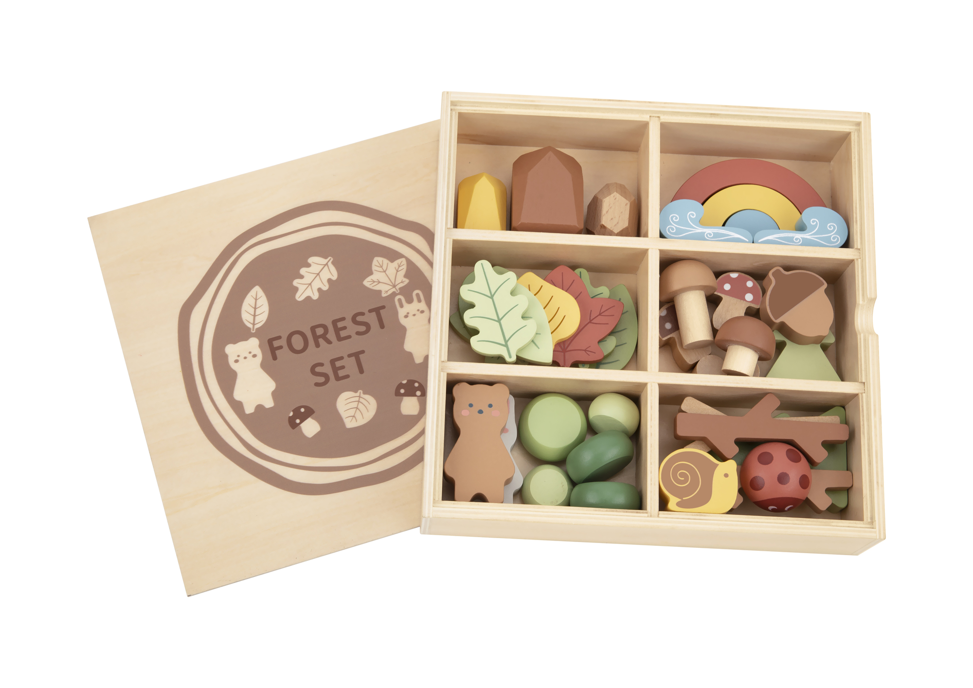 Sada na hranie v boxe LesDrevený hrací set pre milovníkov prírodyDrevená sada na hranie Les od Tooky Toy deti zamestná na celé hodiny. Luxusná drevená krabička so šiestimi priehradkami obsahuje takmer 40 rôznych figúrok lesných zvieratiek, rastlín, stromov, kameňov a ďalších doplnkov, z ktorými...