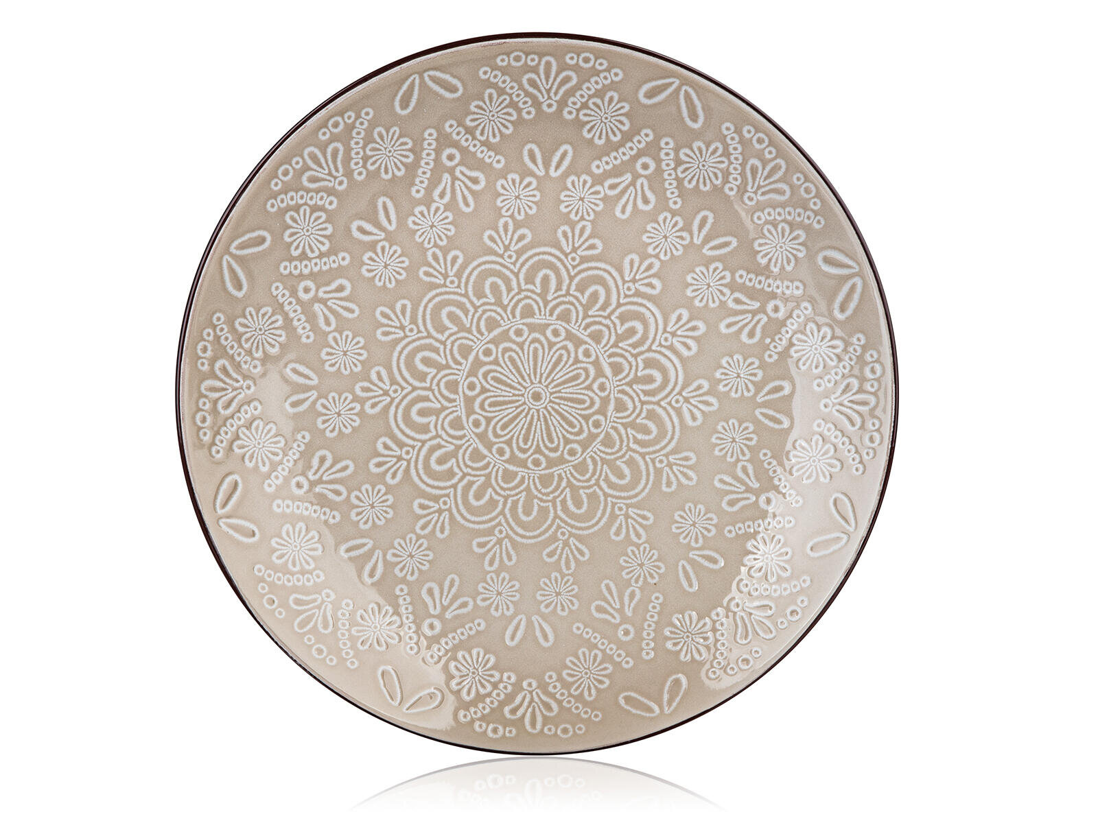Talerz płytki SHAPE, w kremowym kolorze z dekoracją w formie koronki, wykonany z ceramiki.