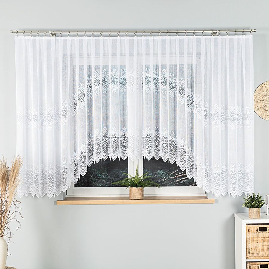 Kvalitní dlouhá oblouková hotová dekorační záclona v moderním trendovém provedení do kuchyně, ložnice nebo obývacího pokoje. Záclona je připravena na zavěšení na žabky. 1 kus v balení.Rozměr : 1x 470x160 cm - šířka 470 cm, výška 160 cm przeczytaj całość