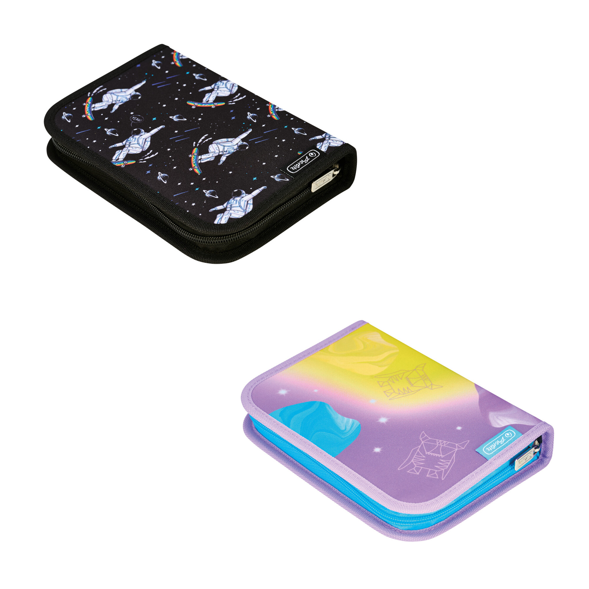 holky a kluci 20,5 x 14 x 3,8 cm, 19 ks psacích potřeb dílů 6 fixí, 6 pastelek, 1 tužka, 1 pero, 1 ořezávátko, 1 guma, 1 pravítko, materiál polyester, Monster, Kosmonaut przeczytaj całość