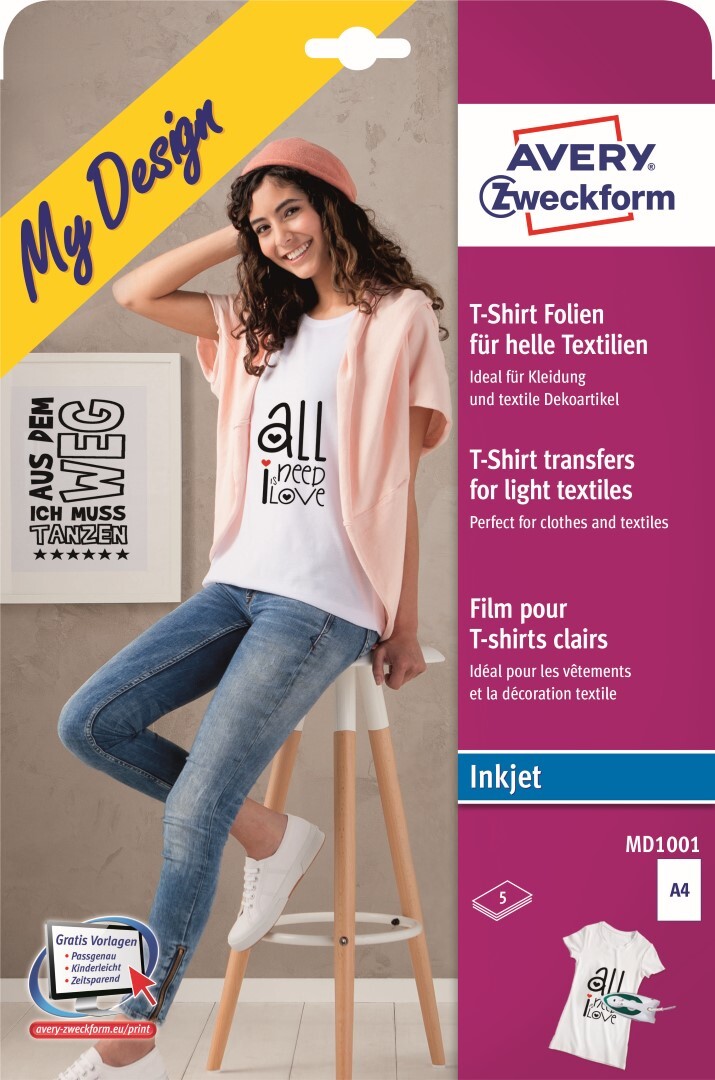Avery Zweckform zažehlovací papír, pro bílá trička, bílý, A4, 5 listů, pro inkoustové tiskárny, O
