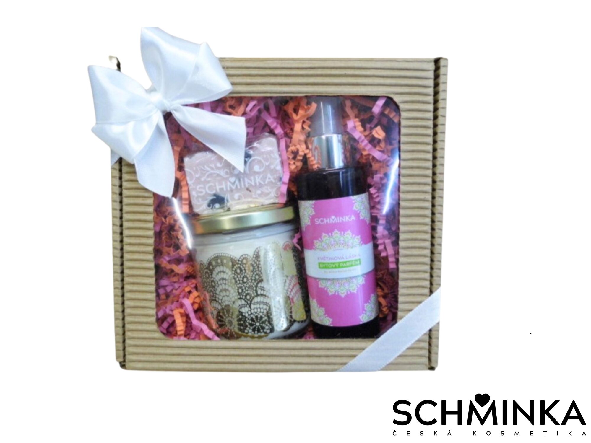 Dárkový balíček "Voňavé potěšení" od Schminky v sobě ukrývá sójovou svíčku s vůní vanilkové hrušky, kouzelné mini olivové mýdlo a bytový parfém s názvem Květinová láska. Tento balíček je perfektní volbou pro ty, kteří si chtějí dopřát jedinečný zážitek plný okouzlujících vůní a relaxace. przeczytaj całość