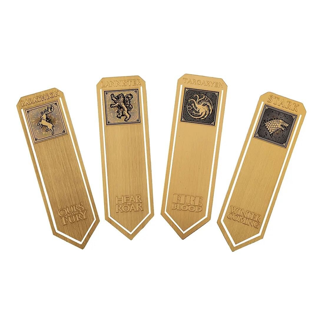 Sada obahuje 4 kovové záložky se znaky rodů Starků, Targaryenů, Lannisterů a Baratheonů z oblíbené fantasy řady Game of Thrones. Záložky, které si čtenáři Hry o trůny zamilují! Rozměry jedné záložky jsou cca 10 x 3 cm.Materiál: směs zinku przeczytaj całość