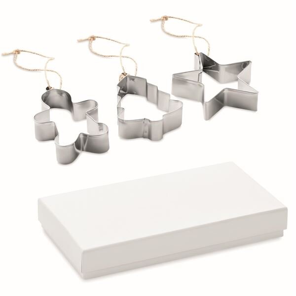Sada 3 vykrajovátek na cukroví z nerezové oceli s jutovou šňůrou;Vytvarujte a upečte čerstvé vánoční cukroví nebo použijte tato vykrajovátka jako ozdoby na stromeček;Zavěste je za jutovou šňůru na stromeček jako ozdobu. przeczytaj całość