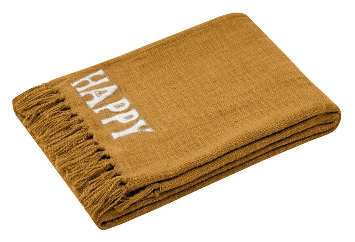 Bavlněný pléd HAPPY CURRY mustard 125x150 cm France