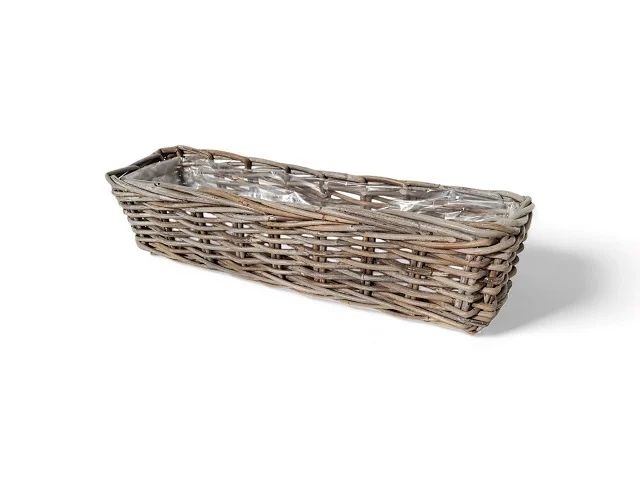 Ratanový koš s igelitovou výstelkou šedý, 50x14x12 cm