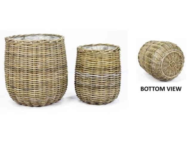 Sada 2ks ratanových košů, šedé s igelitovou výstelkou