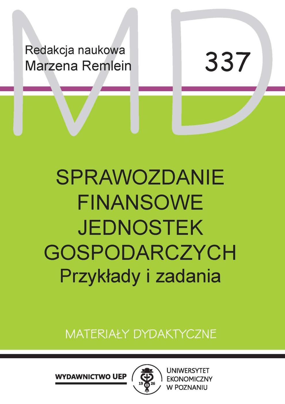 Sprawozdanie finansowe jednostek gospodarczych. Przykłady i zadania Niniejsze opracowanie zawierające zestaw przykładów i zadań do rozwiązania ma służyć studentom jako materiał pomocniczy na zajęciach z przedmiotu sprawozdawczość finansowa. Może być również wykorzystane przez słuchaczy studiów...
