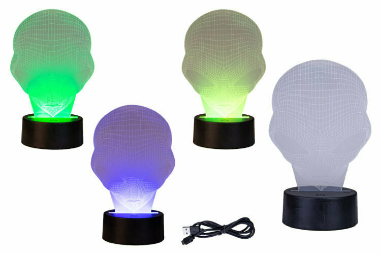 Nietypowa lampka LED w kształcie głowy kosmity (wzór - alien). W pudełku mamy do dyspozycji podstawkę, kabelek USB i przezroczystą wkładkę z tworzywa z motywem obcego. Po włączeniu produktu ukaże nam się świecąca głowa kosmity. Istnieje możliwość używania lampki na baterie (3xAA - brak w...