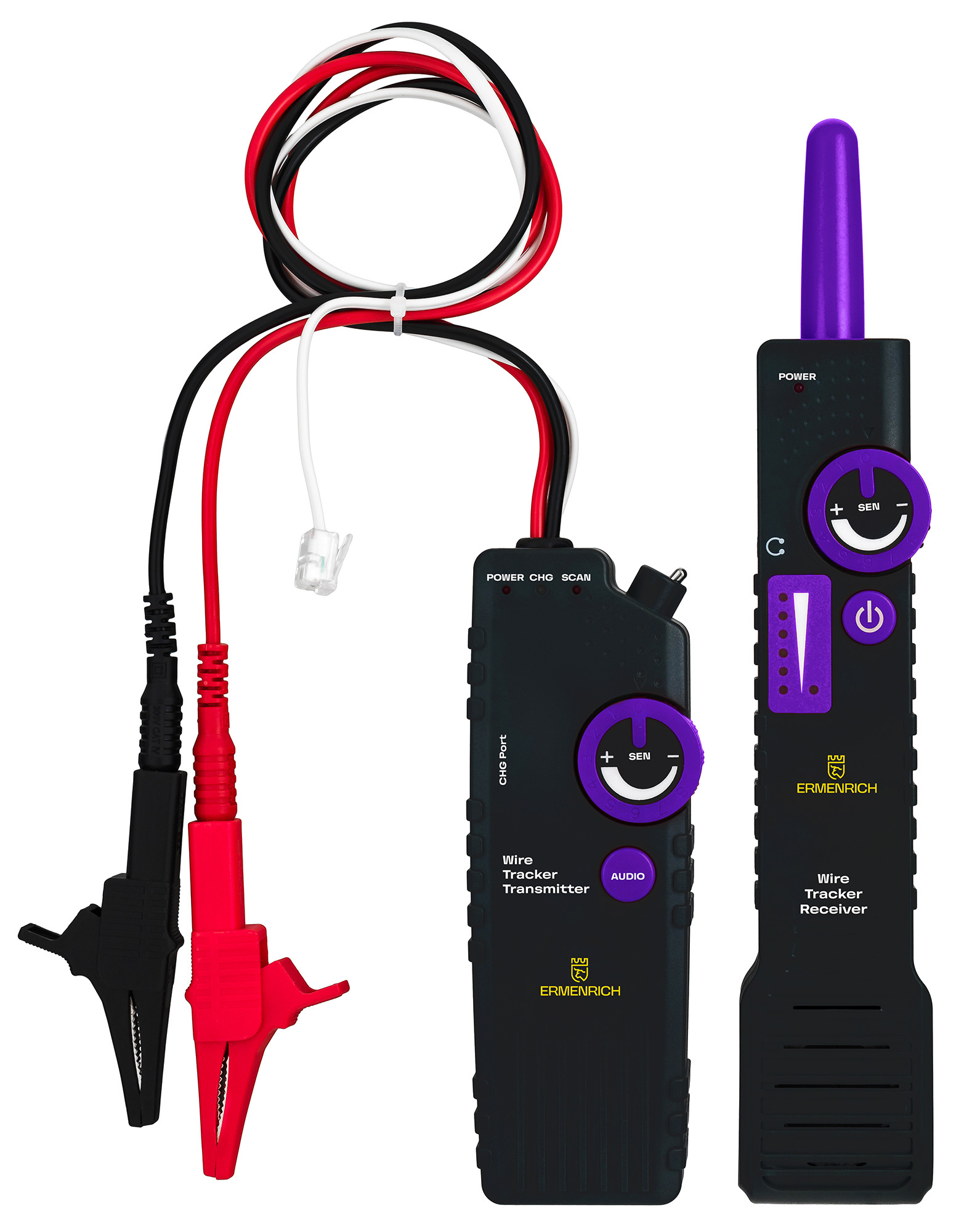 Urządzenie Ermenrich Ping SM100 jest przeznaczone do lokalizacji przewodów w ścianach i sufitach oraz przewodów położonych w ziemi. Maksymalna głębokość wykrywania wynosi 2 metry. Urządzenie potrafi odnaleźć przewody zarówno nieobciążone napięciem, jak i pod napięciem, co oznacza, że można go używać do lokalizowania przewodów ukrytych pod tynkiem, mapowania tras kablowych, wyszukiwania miejsc pod wiercenie itp. Wykrywanie przewodów odbywa się z ochroną przed przesłuchami.