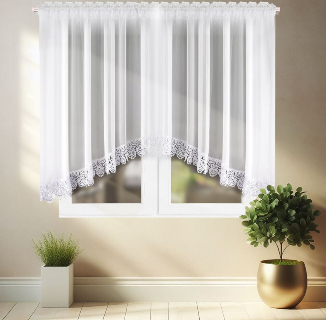 Kvalitní krátká hotová oblouková dekorační voálová záclona do ložnice nebo obývacího pokoje v rozměru 400x150 cm. Záclona má našitou řasící pásku s tunýlkem pro zavěšení na tenčí garnyž, žabky nebo háčky. Jemná záclona do oblouku je vyrobená z kvalitního hladkého bílého voálu. Díky své na dotek...