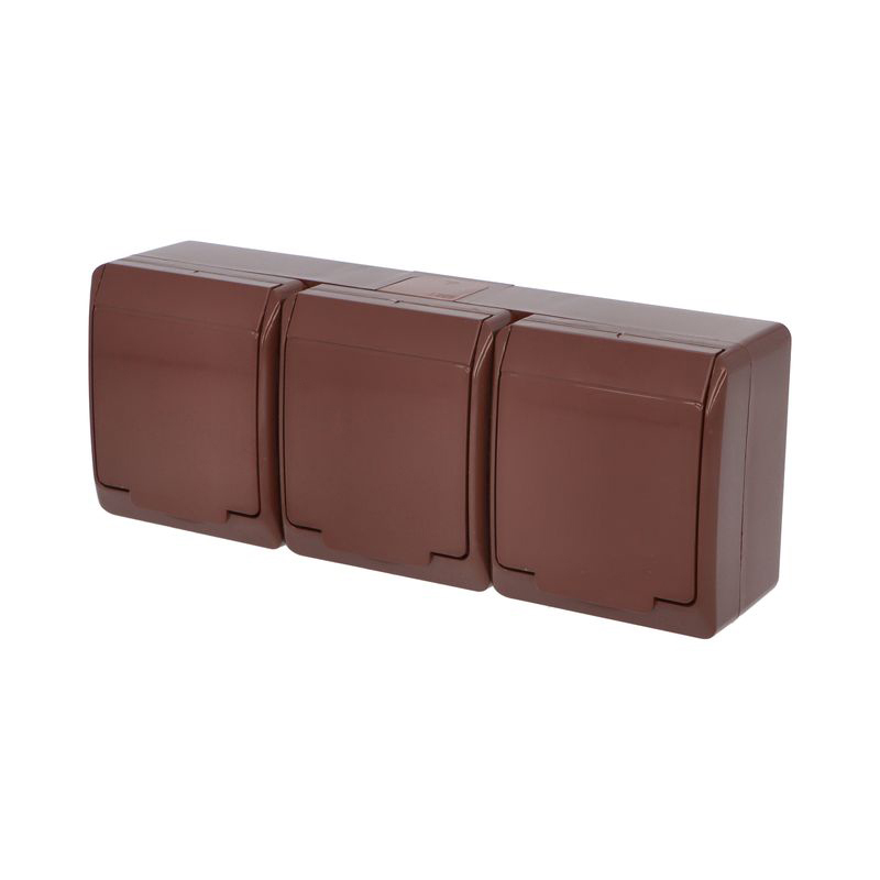 GALATEA IP44 Zásuvka 3x 2P+PE, 3-násobná vodorovná (hnědá)