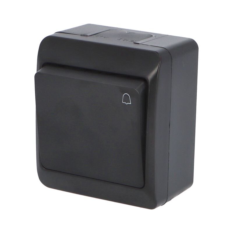 GALATEA 5337-09 IP44 Tlačítko symbol "zvonek" č.1/0 (černá).Spínače a zásuvky ve vyšším krytí GALATEA IP44 s gumovou průchodkou (pro kabely do průměru 13,5 mm a trubky do 16 mm) jsou speciálně navrženy do prostředí se zvýšeným výskytem vlhkosti a prachu. Odolnost proti mechanickým nárazům IK07...