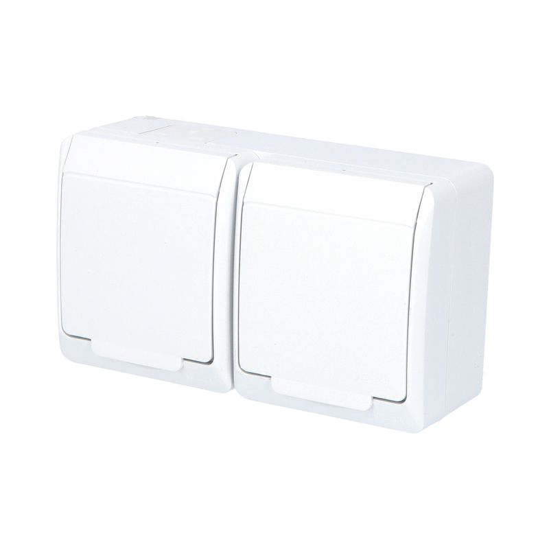 GALATEA IP44 Zásuvka 2x 2P+PE, 2-násobná vodorovná (bílá)