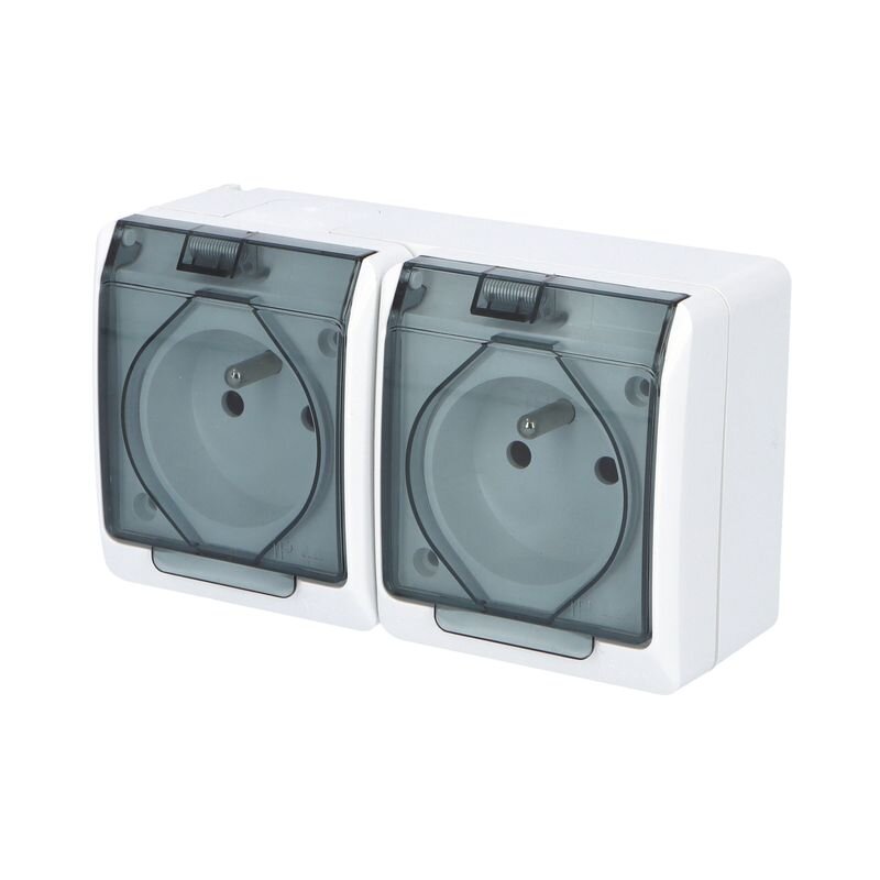 GALATEA IP44 Zásuvka 2x 2P+PE, 2-násobná vodorovná (bílá / průhledné víčko)