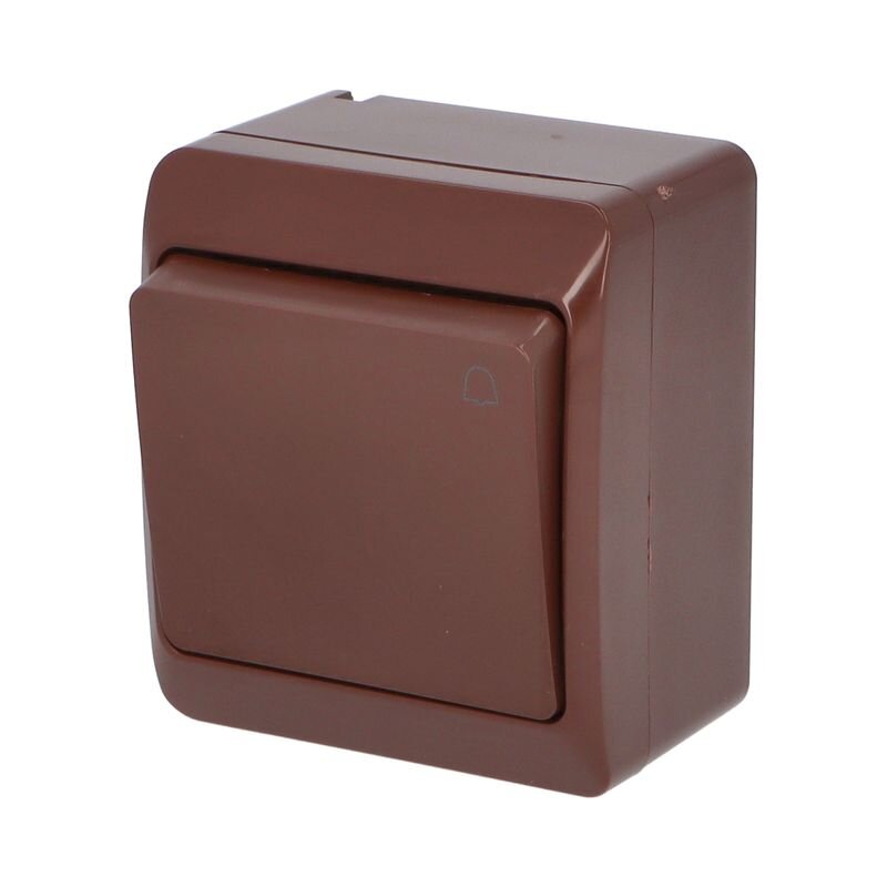 GALATEA 5337-06 IP44 Tlačítko symbol "zvonek" č.1/0 (hnědá).Spínače a zásuvky ve vyšším krytí GALATEA IP44 s gumovou průchodkou (pro kabely do průměru 13,5 mm a trubky do 16 mm) jsou speciálně navrženy do prostředí se zvýšeným výskytem vlhkosti a prachu. Odolnost proti mechanickým nárazům IK07...