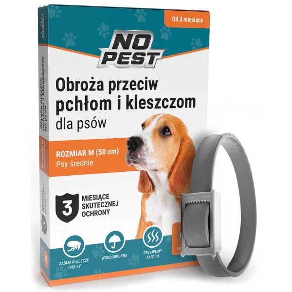 Twój pies ma średnie rozmiary, ale jego ochrona nie musi być przeciętna! Dlatego potrzebujesz obroży przeciw kleszczom i pchłom w odpowiednim rozmiarze dla twojego psa. Obroża No Pest® przeciw kleszczom i pchłom zawiera dwie substancje czynne: permetrynę i geraniol, które skutecznie zwalczają i odstraszają kleszcze oraz pchły, chroniąc twojego psa przez 3 miesiące.