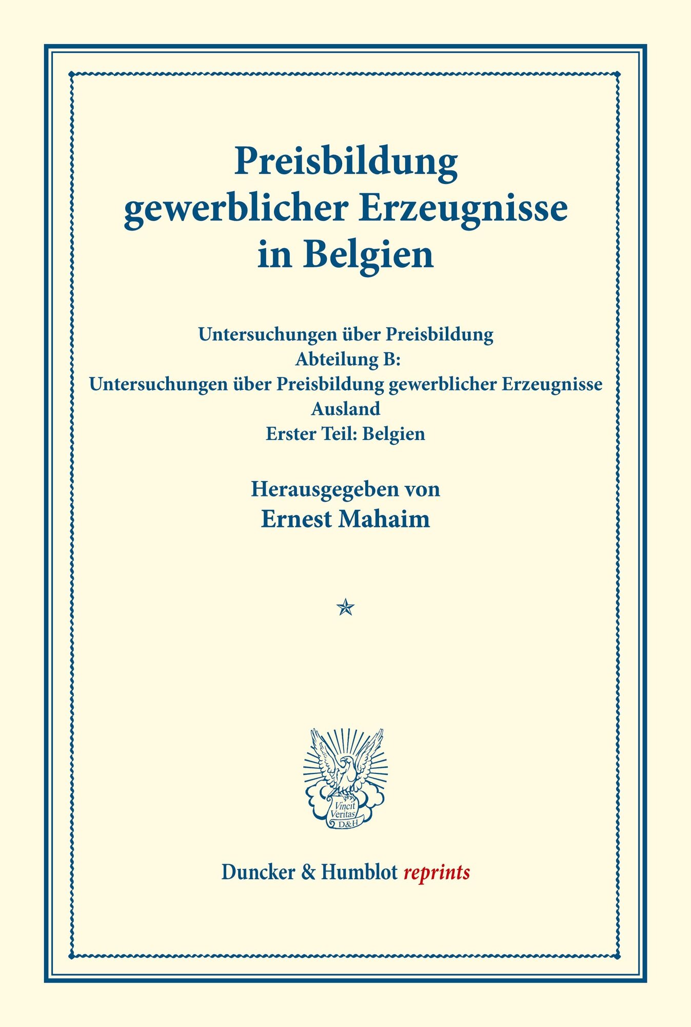 Preisbildung gewerblicher Erzeugnisse in Belgien. (francuski)