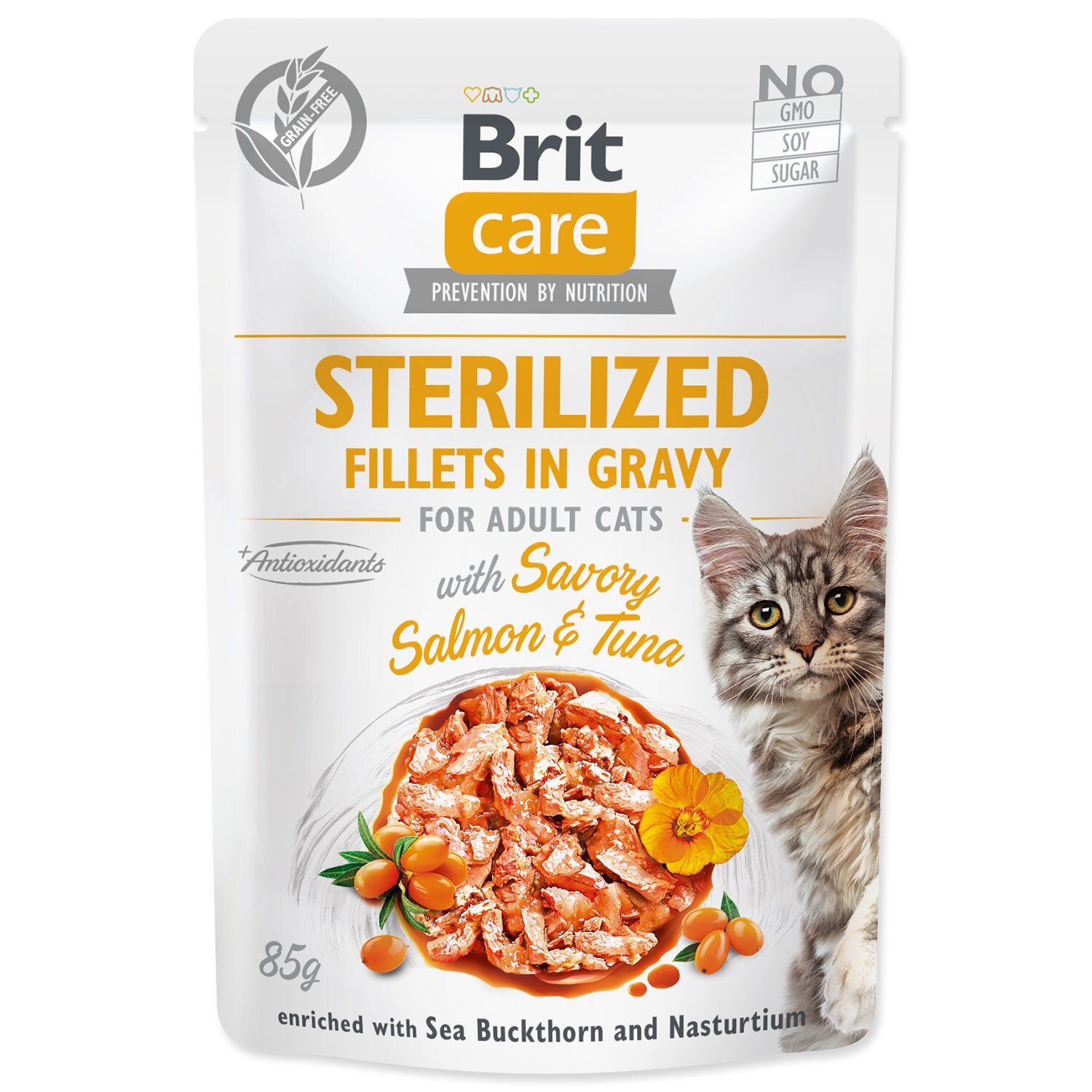 Kapsička Brit Care Cat Sterilized losos a tuňák, filety v omáčce 85g
