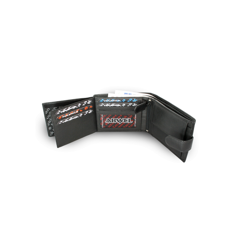 Kožená pánská peněženka od české značky Arwel.Vlastnosti:• 2 přihrádky na bankovky• 1 kapsa na mince• 7 kapes na kreditní karty• 4 průhledné kapsy• 2 boční kapsy• 1 vnitřní zipová kapsa• kapsy jsou velikosti osobních dokladůMateriál: pravá hovězí kůže (nappa) przeczytaj całość