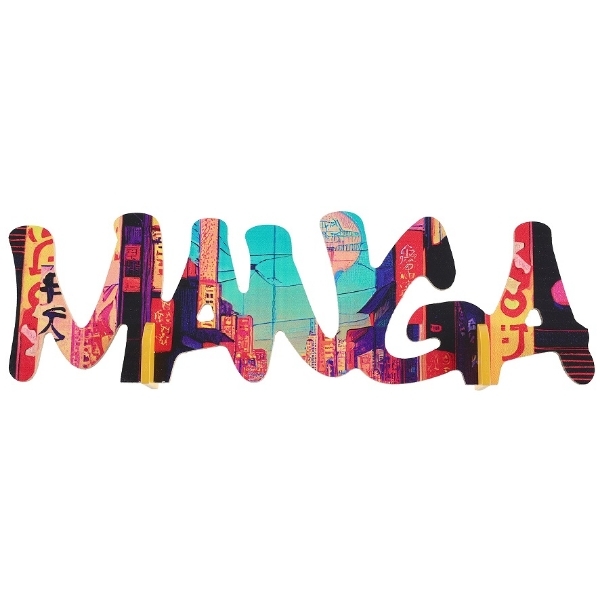 Dřevěná dekorace Manga – barevný nápis na stůl, 27 cm