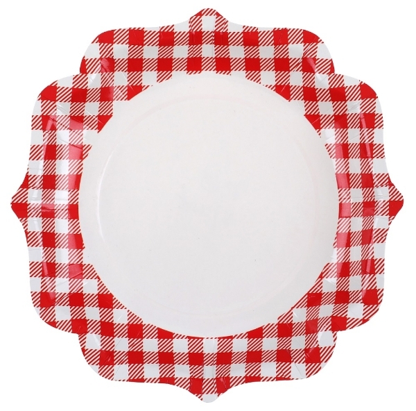 Papírové talíře červenobílé kostkované – venkovský styl, 21 cm, 10 ks