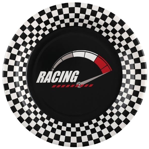Dodaj swojej imprezie prawdziwie wyścigową atmosferę! Te okrągłe papierowe talerze Formuły 1 łączą czarny, biały i czerwony kolor w wzorze przypominającym prędkościomierz wyścigowy i charakterystyczną szachownicę. Doskonale nadają się na dziecięce urodziny, przyjęcia małych kierowców oraz tematyczne imprezy motorsportowe. Łatwo dopasujesz je do innych dodatków z kolekcji Formuła 1. Talerze są wytrzymałe, dobrze trzymają kształt i świetnie nadają się do ciasta oraz innych przekąsek.