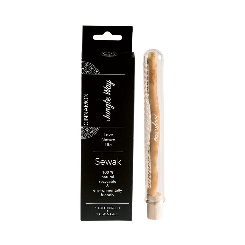 Jungle Way Zubní kartáček sewak se skořicovou příchutí se skleněným pouzdrem
