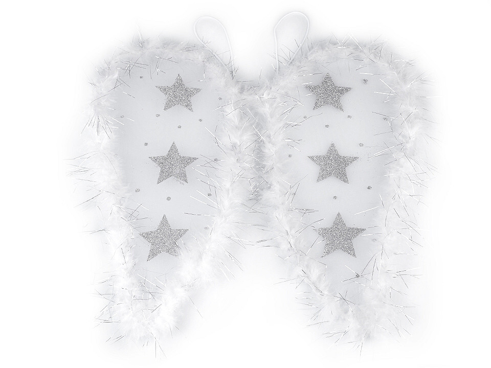 Andělská křídla s peřím a glitrovými hvězdami - 1 ks - bílá