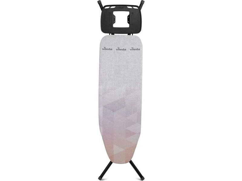 Deska do prasowania Vileda Diamond S z mniejszą powierzchnią prasowania 114×33 cm i uchwytem na żelazko z otworami na wieszaki. Regulowana wysokość od 71 do 90 cm, aby zapobiec bólom pleców, i stoi stabilnie dzięki solidnej stalowej konstrukcji. Wyposażona w zabezpieczenie przeciwko złożeniu przez dzieci, które zapobiega przypadkowemu złożeniu deski. Pokrowiec dłużej wygląda jak nowy i jest 3× bardziej odporny na ciepło. Certyfikat OEKOTEX100 Łatwa regulacja wysokości 71-90 cm